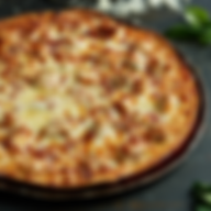 Alfredo sauce, chicken, bacon, and a blend of cheeses.